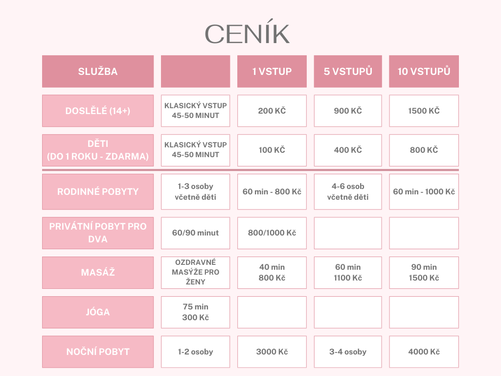 Součástí je slaný vodopád, relaxační hudba a jemné osvětlení.